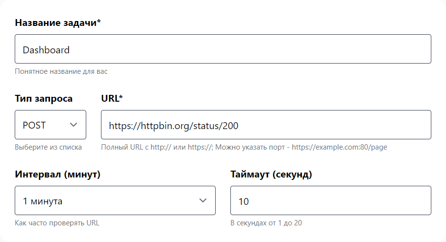 Мы будем мониторить URL c интервалом от 1-ой минуты